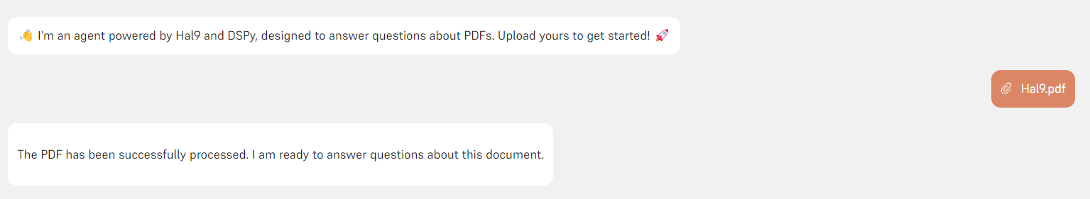 With DSPy, you can build advanced AI-powered systems like a PDF chat agent with much less effort, shifting the focus from managing prompts to constructing modular, efficient AI programs. This post will demonstrate how to leverage DSPy’s powerful modules to create a document-interacting chatbot, while using Hal9’s robust infrastructure to deploy and interact with OpenAI's LLMs effortlessly.
