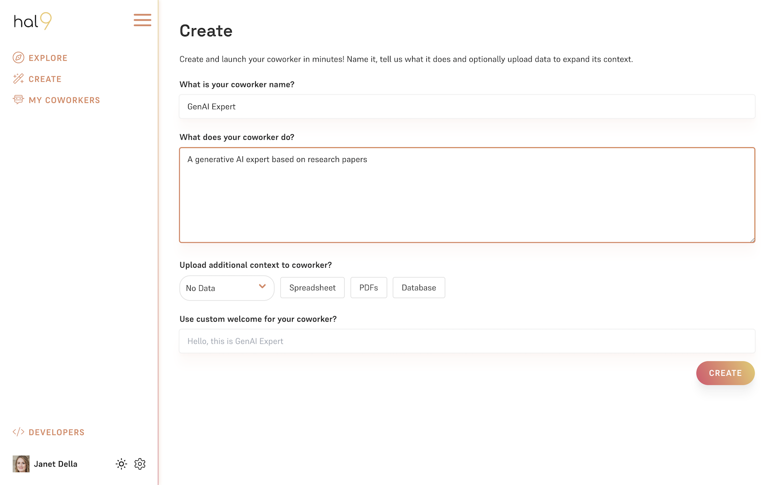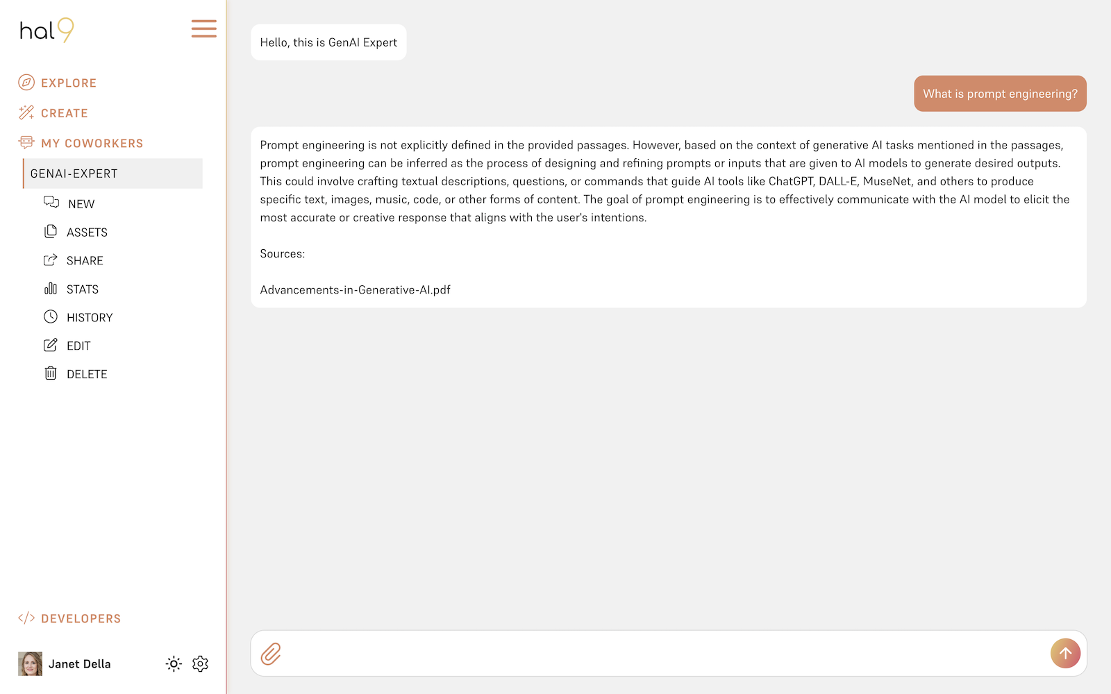 Hal9 enables generative solutions ranging from document queries, data queries, data applications, interactive workflows, machine learning applications or even complex AI solutions.